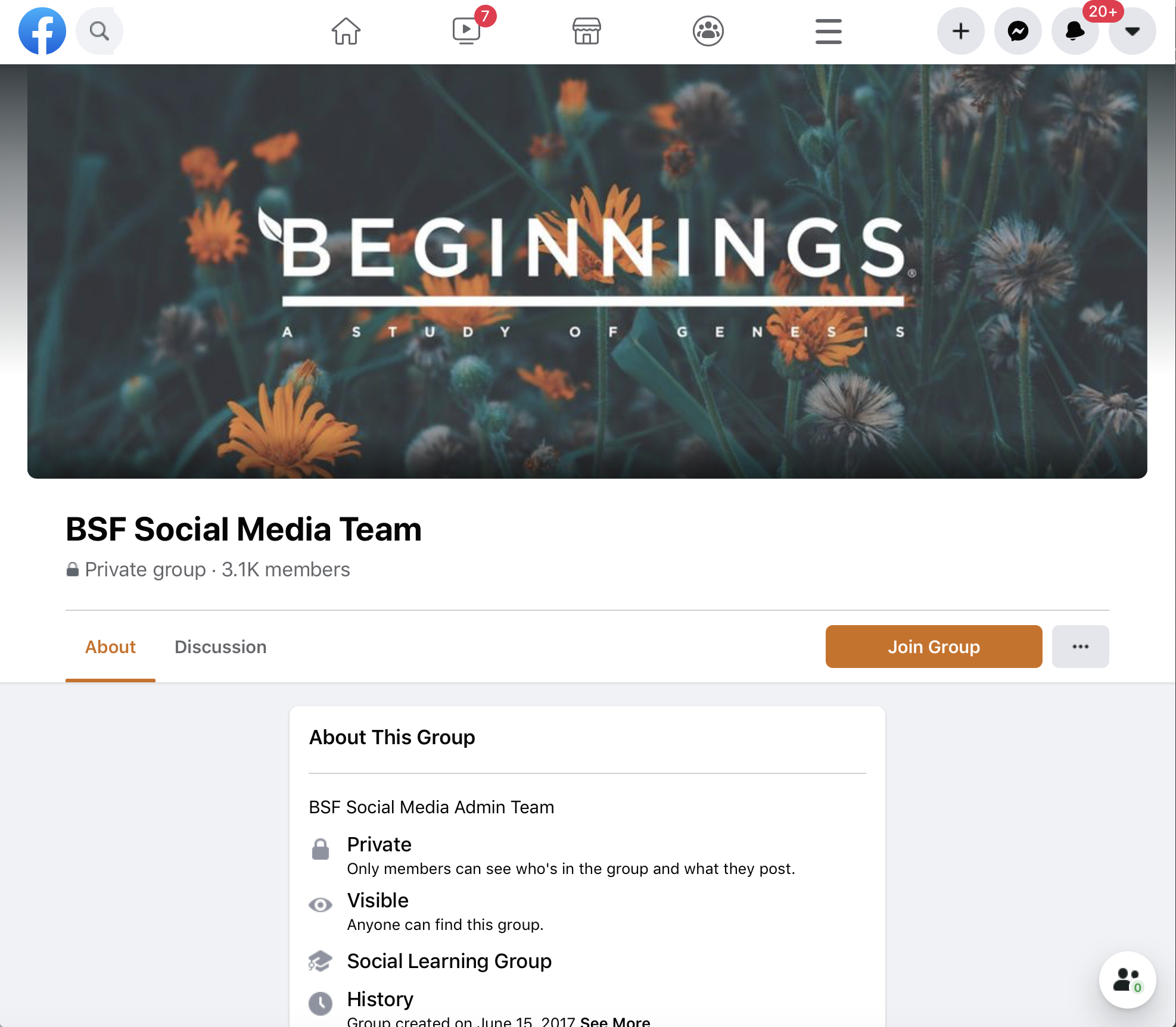 This group is for BSF class Facebook page administrators to share ideas, ask questions, and support one another in managing their pages. Together we’ll learn best practices, encourage one another, and keep our online presence aligned with BSF’s mission to share God’s Word with excellence.